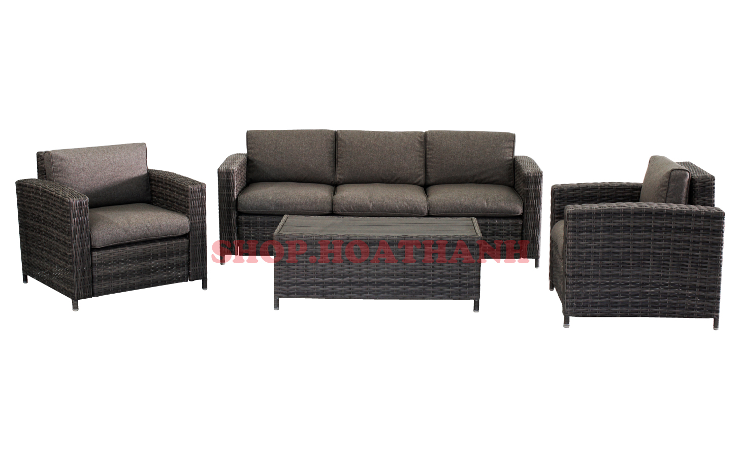 '- Bench 3 : 200 x 80 x 77 cm- Single chair : 82 x 80 x 77 cm- Table : 111.5 x 56.5 x 42 cm