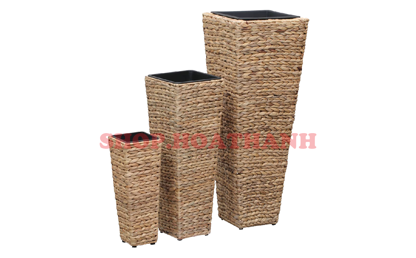 Set of 3 Tall Square Water Hyacinth Planter with Plastic Pot